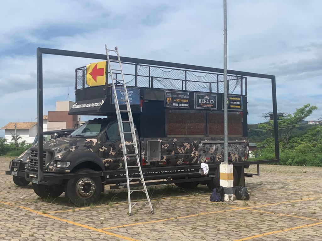 Telão para transmissões ao vivo de Copa do Mundo, UFC, Fórmula 1 e mais. Com estrutura de bar, som e decoração temática para torcedores. Perfeito para estacionar em frente a bares parceiros.